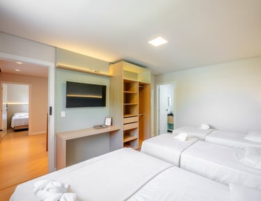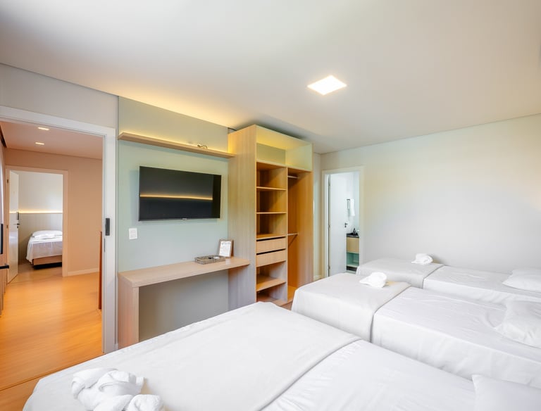 Suítes privativas, confortáveis e com o aconchego de casa.