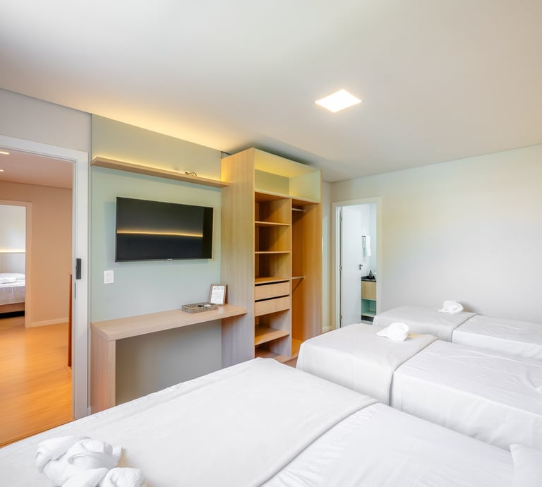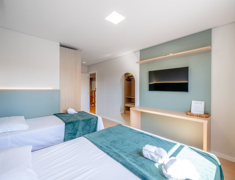 Espaçoso, com cama extra e ambiente tranquilo para momentos especiais em família.
